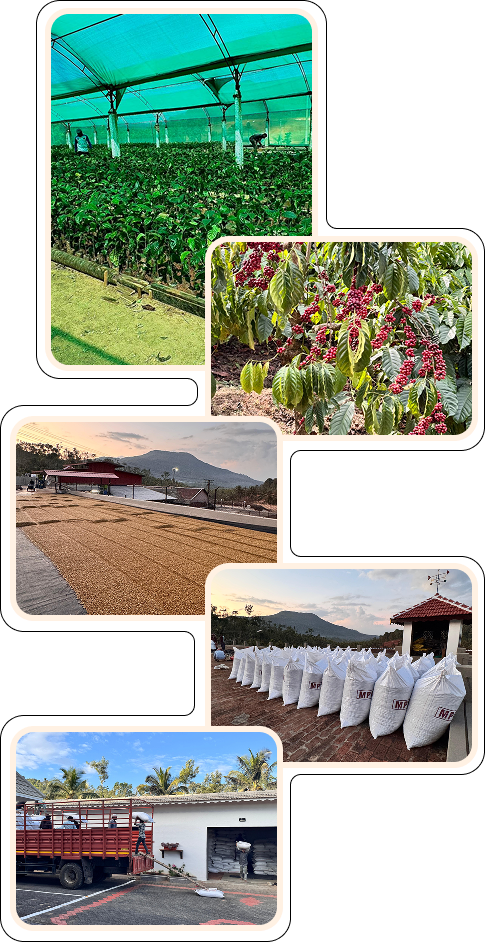 A tastefully maintained, award winning property situated in the lush Bhadra coffee growing region of Karnataka, India – 13.21 North & 75.24 east with an elevation ranging from 23780–2698 Feet above mean sea level, with mean annual temperatures ranging from 13–36 degrees celsius, Kattinmane estate is second to none, receiving an annual rainfall of 90 to 124 inches while boasting a heritage of 100+ years as pioneers in the Indian plantation industry, primarily shade grown and processing one of the highest trading commodities in the world market – Coffee, since 1910.